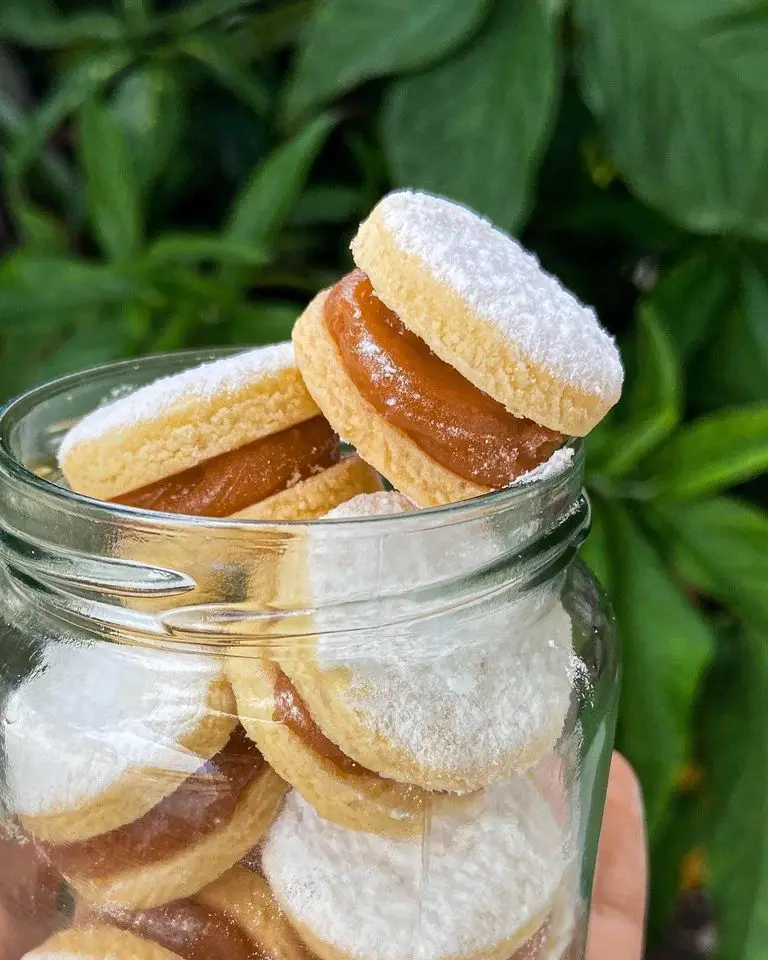 Delicate shortbread cookies filled with creamy dulce de leche and dusted with powdered sugar — the perfect sweet gift for the holidays!
